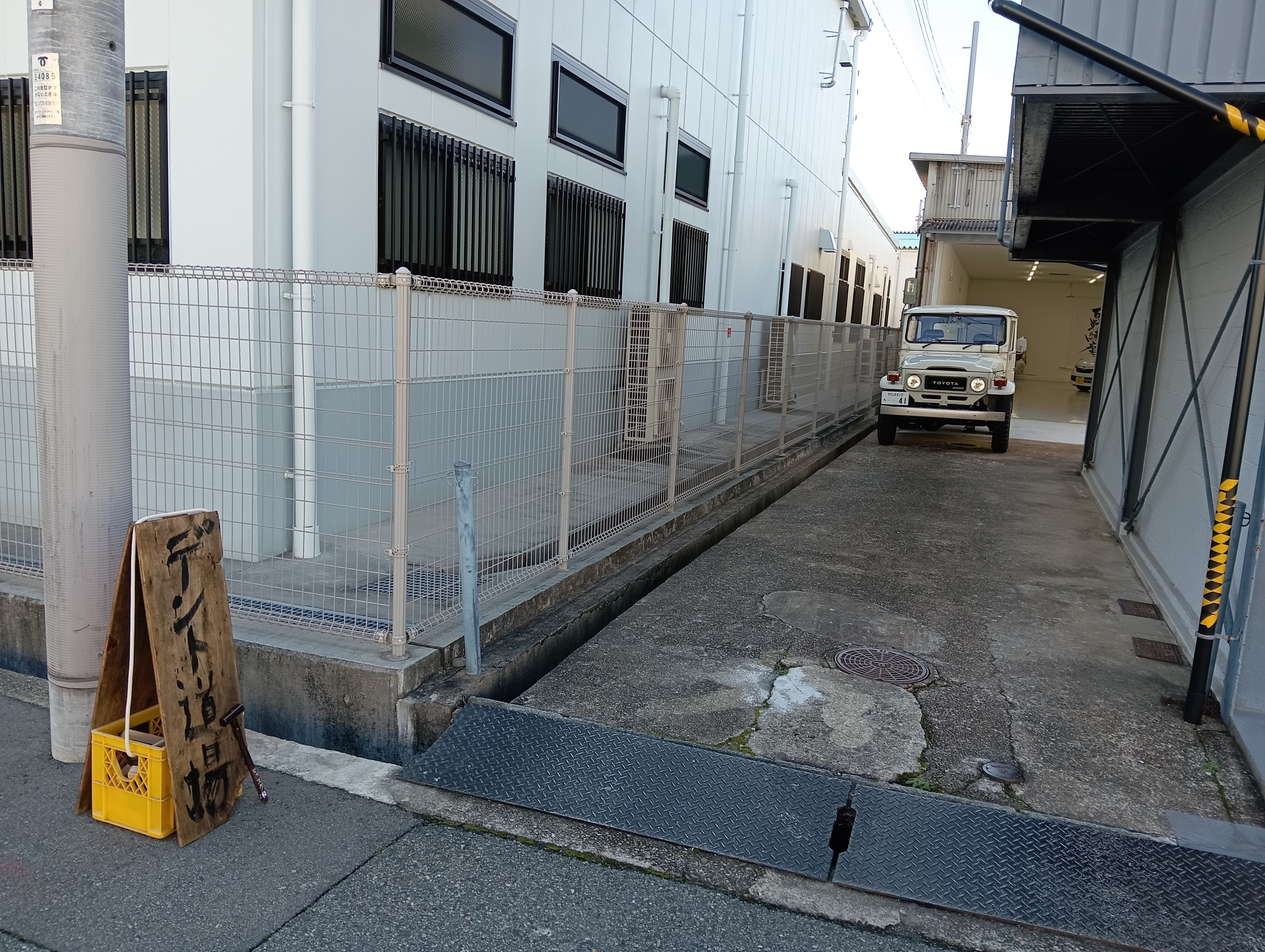 お車でお越しの際は入口が狭いので、スタッフが誘導いたします。